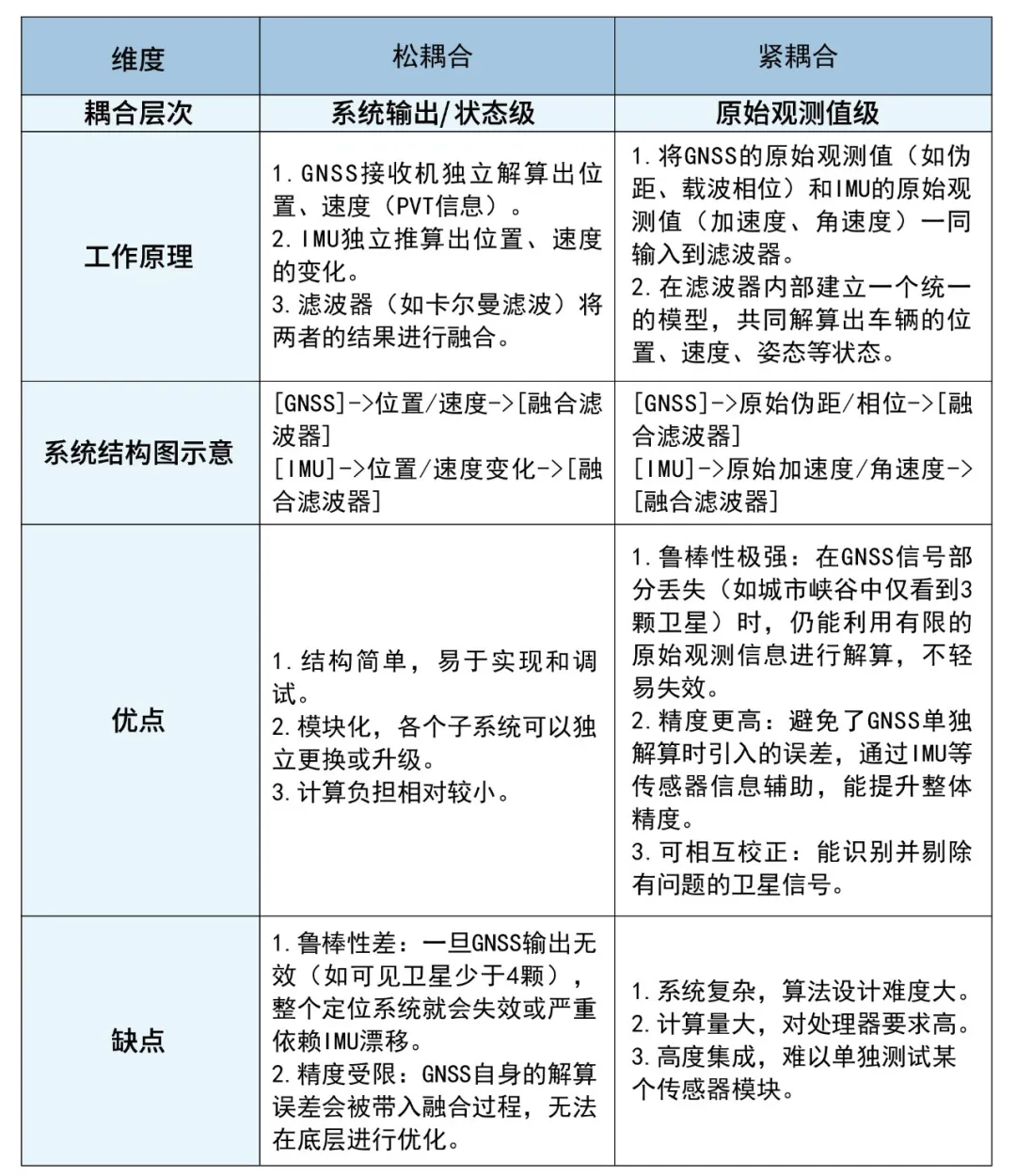 在自动驾驶中,这个概念最常用于定位(尤其是GNSS全球导航卫星系统 + IMU惯性测量单元的组合)和传感器融合。下表以定位为例进行详细对比: